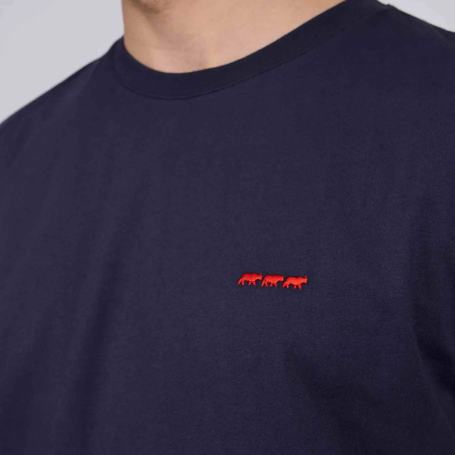Soyez à l’aise toute la journée avec ce tee-shirt pour homme à manches courtes. Avec son coloris bleu marine uni, son col rond et sa coupe droite, ce modèle convient à tous les styles et morphologies. Confectionné intégralement en coton, il garantit douceur et respirabilité. Le détail qui change tout ? Sa petite broderie « 3 vaches » contrastée. Cet essentiel facile à vivre se porte seul ou sous un gilet de notre collection pour un style à la fois élégant et décontracté !